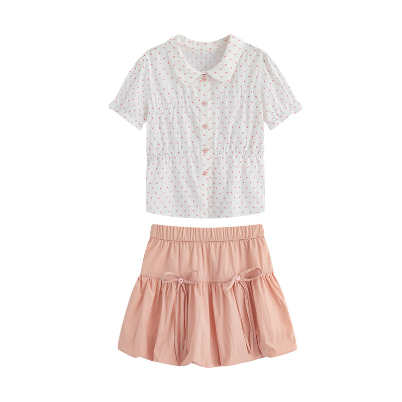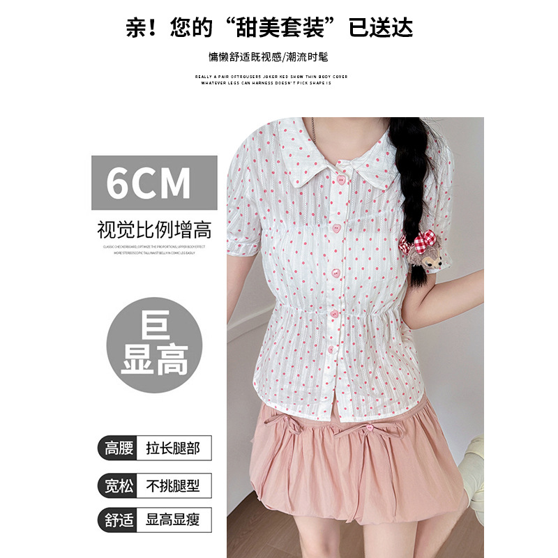 Japanese style pink polka dot doll collar short-sleeved women's summer casual loose shirt small cute age-reducing two-piece suit