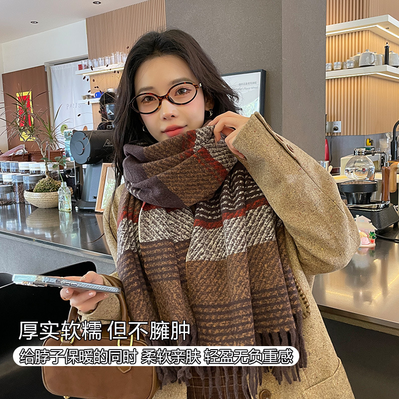 New imitation cashmere color plaid scarf women's Korean autumn and winter plaid scarf tassel shawl neck