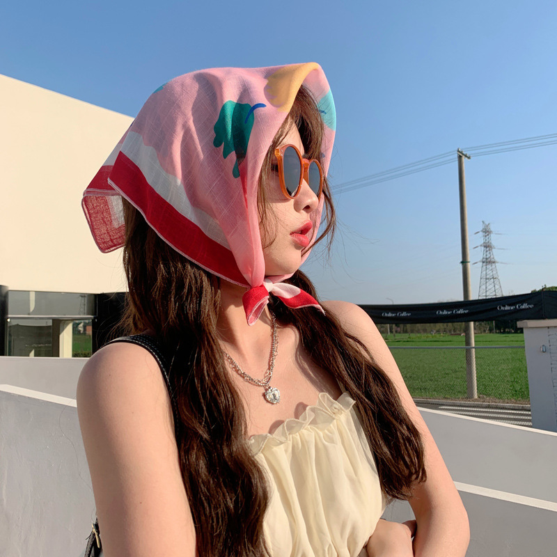 棉麻围巾小方巾女花朵小碎花文艺复古领巾春夏装饰发带头巾小清新