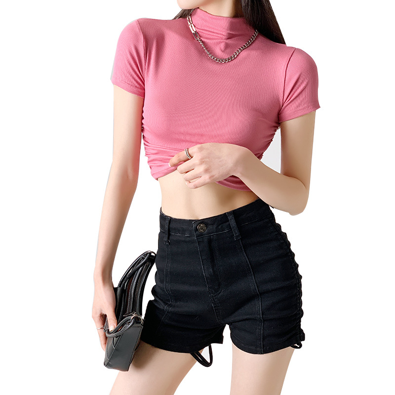Dopamine wear bottoming shirt women's half-high collar spring and summer navel-baring short-sleeved T-shirt sexy hot girl slim short top