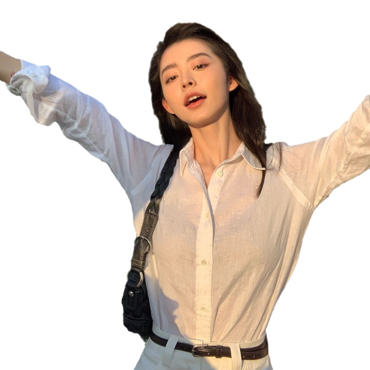 Classic style pony logo ruff linen shirt women's long sleeve loose cardigan top women's commuting sun protection white shirt