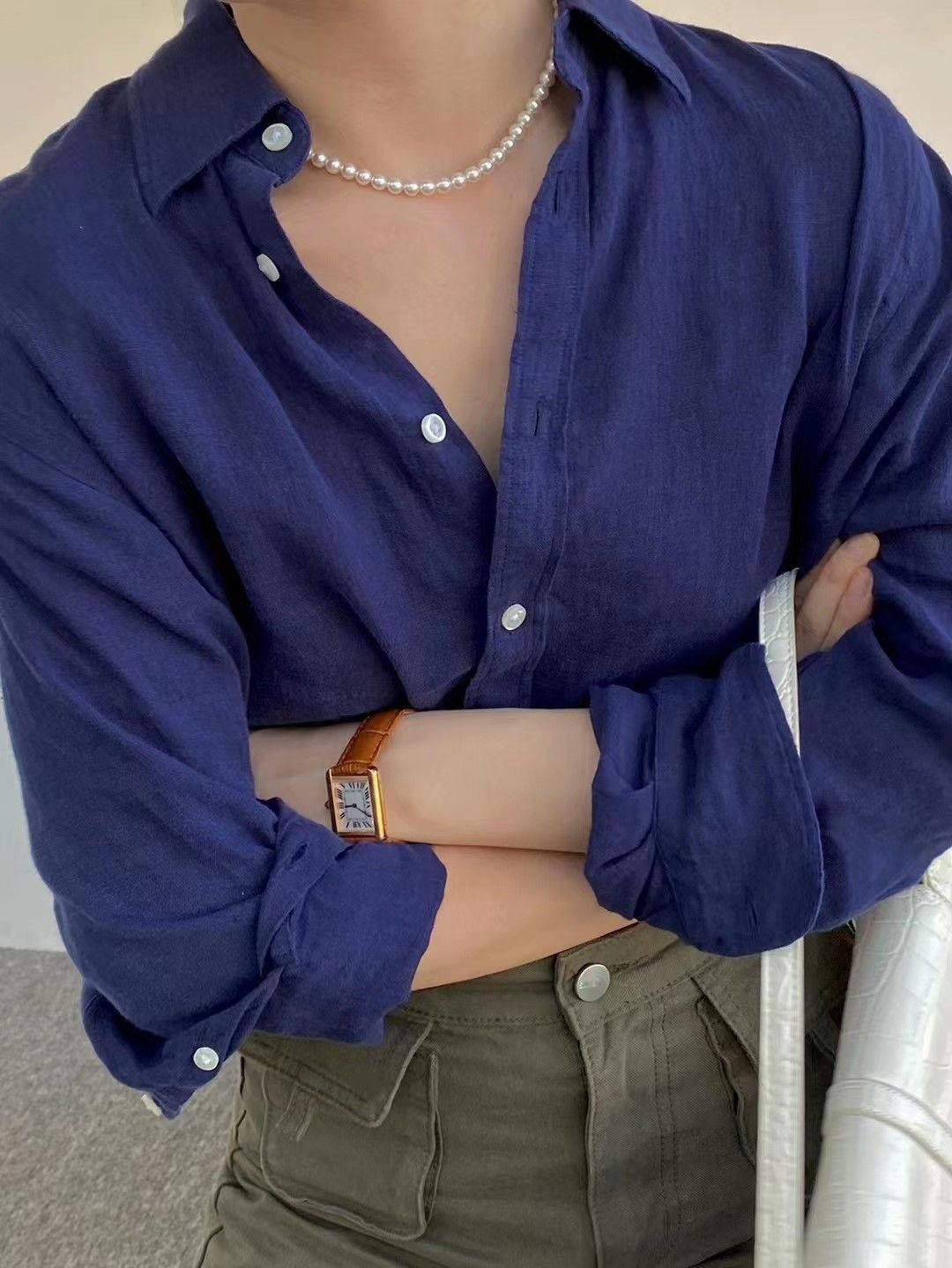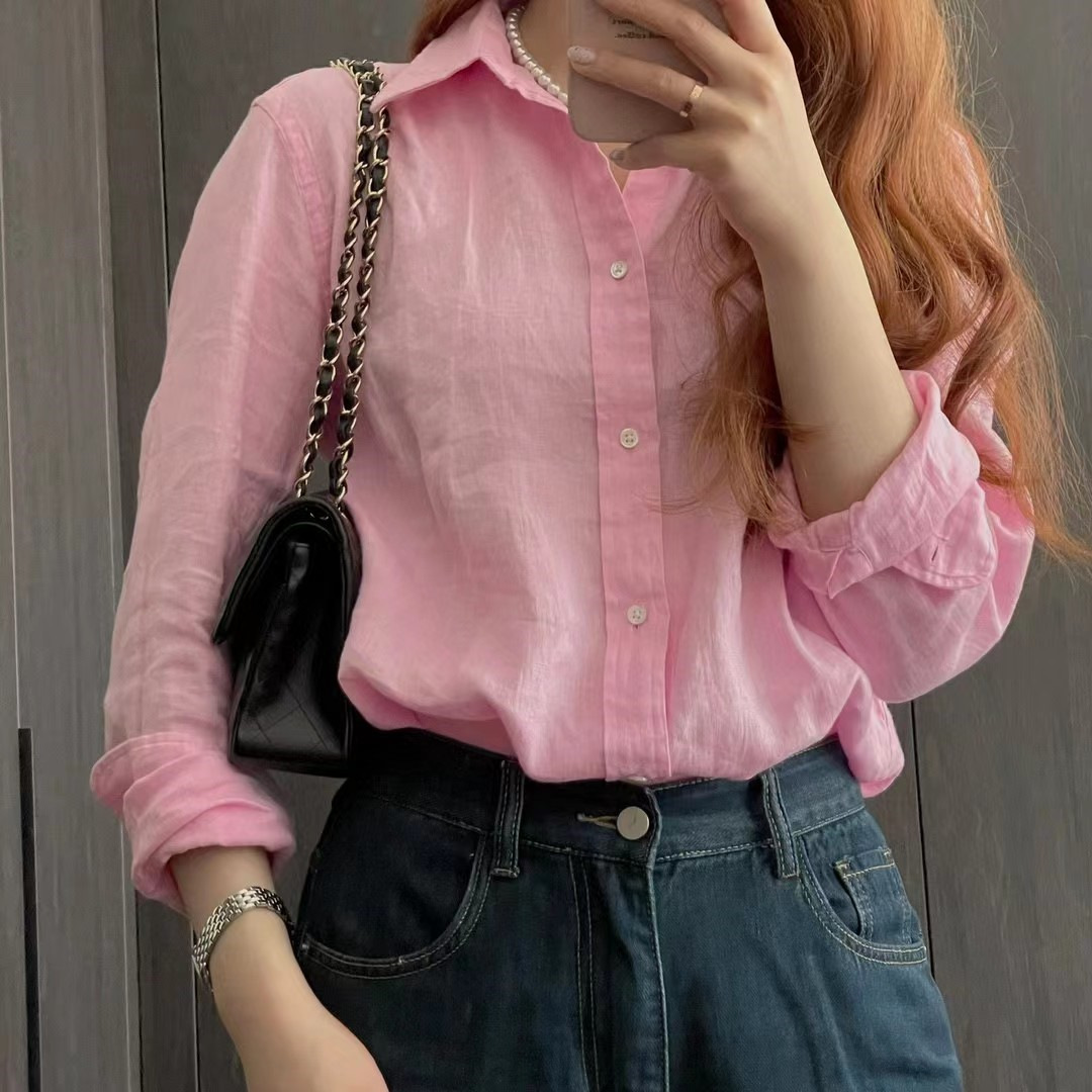 • Classic style pony logo ruff linen shirt women's long sleeve loose cardigan top women's commuting sun protection white shirt