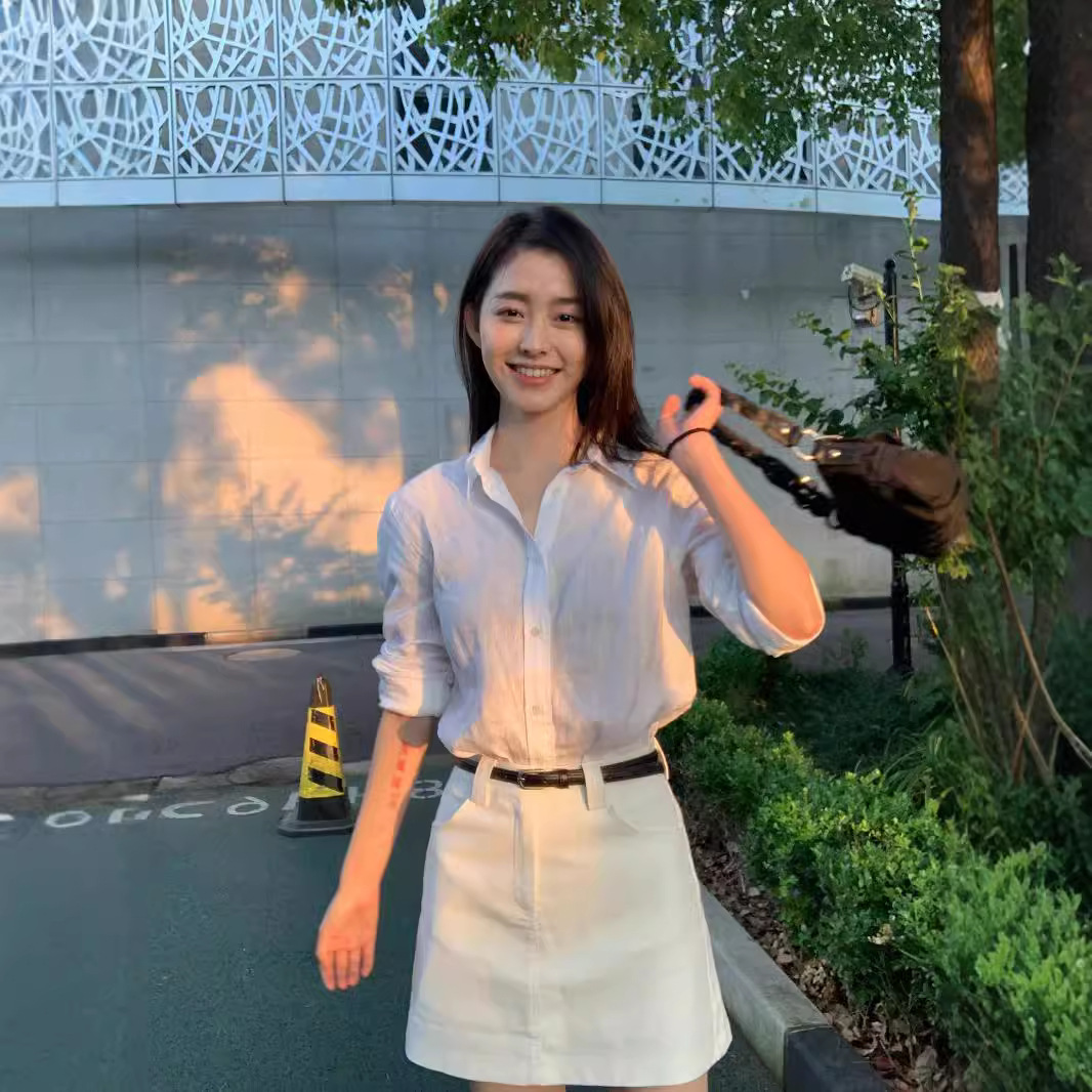 Classic style pony logo ruff linen shirt women's long sleeve loose cardigan top women's commuting sun protection white shirt