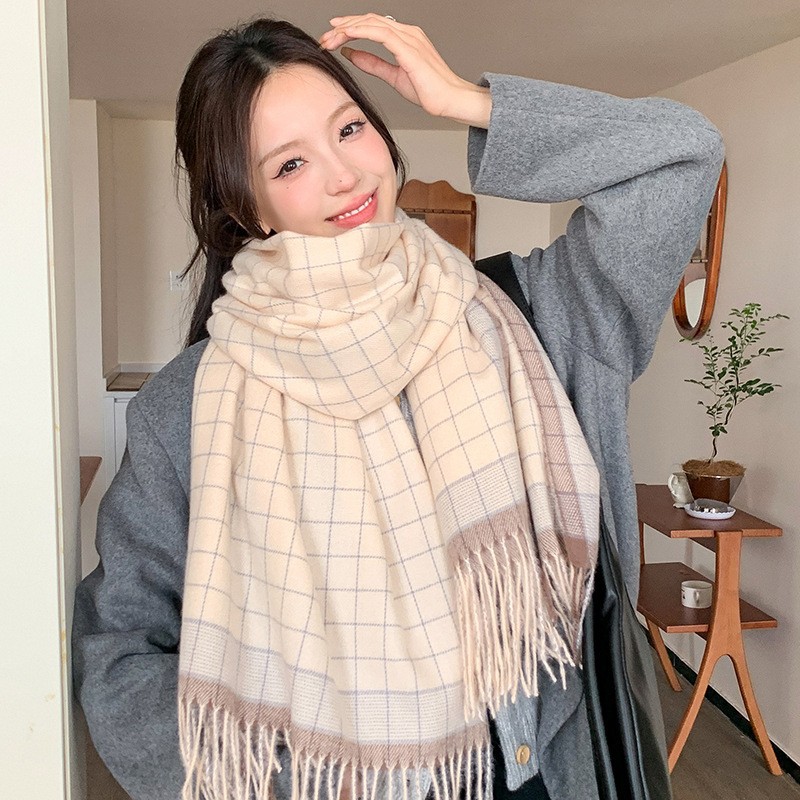 New imitation cashmere color plaid scarf women's Korean autumn and winter plaid scarf tassel shawl neck